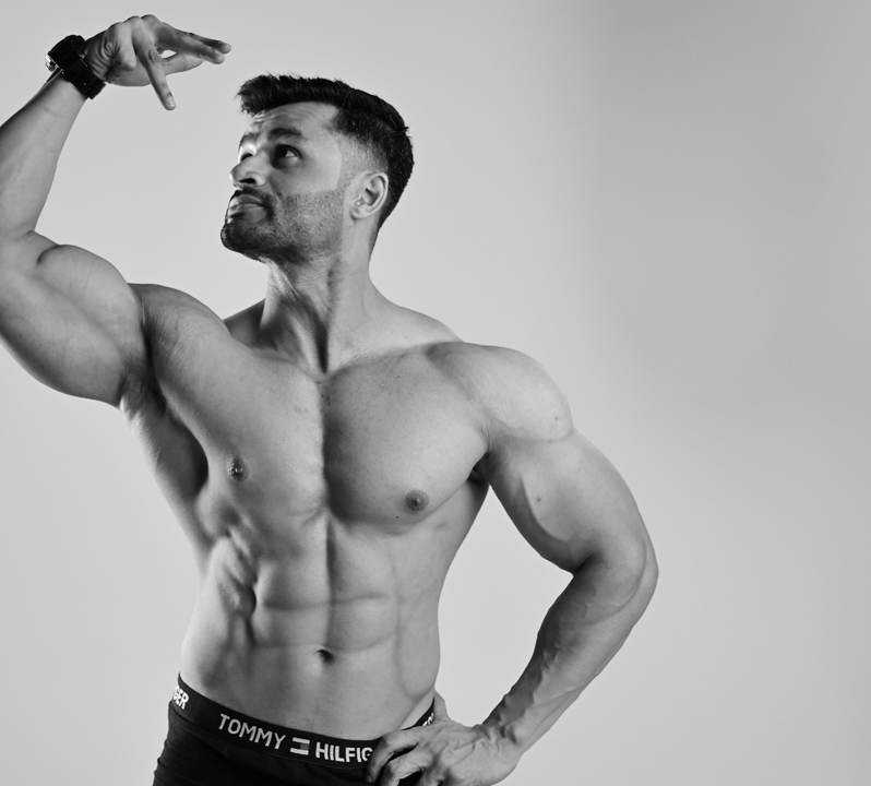He belongs to a middle-class family in Lahore, Pakistan. He has had a passion for bodybuilding since childhood because of his father. After school, he started going to the gym and cycling 5–6 km a day. Due to financial issues, he couldn’t study further and started doing job in a warehouse of computers in 2006 with a salary of 40 AED a month. But he wanted to grow, so he switched from one company to another. He started his journey with the help of his friend Hamid, who was working there. He was a former body builder who helped him to become a better version of himself. His new boss encouraged him to continue his studies and provided him with 1 month's paid leave. His professional bodybuilding started as he applied to university on a sports basis, where he prepared for university competition in 2010.